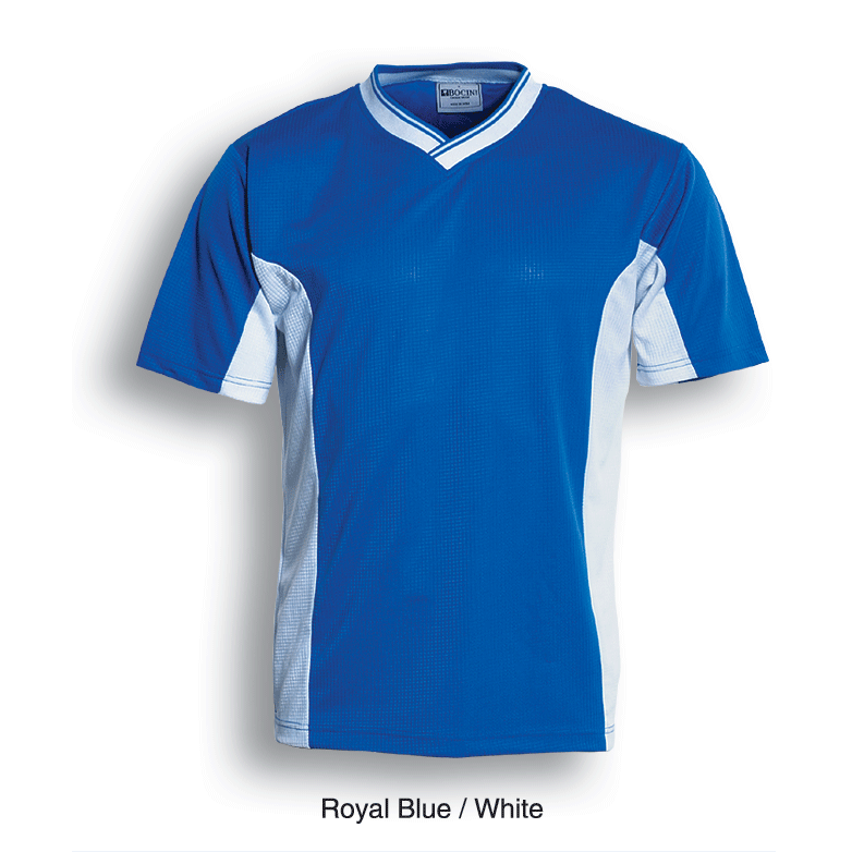 Unisex Cut V Neck Sports Jersey With Contrast Panels. (Available In Kids Cut + Matching Shorts Ck618)