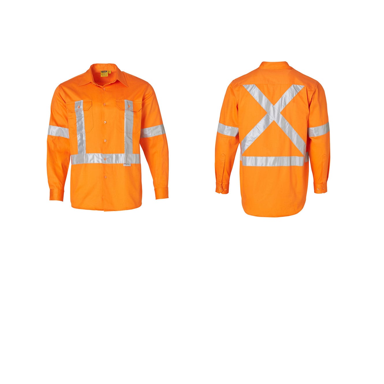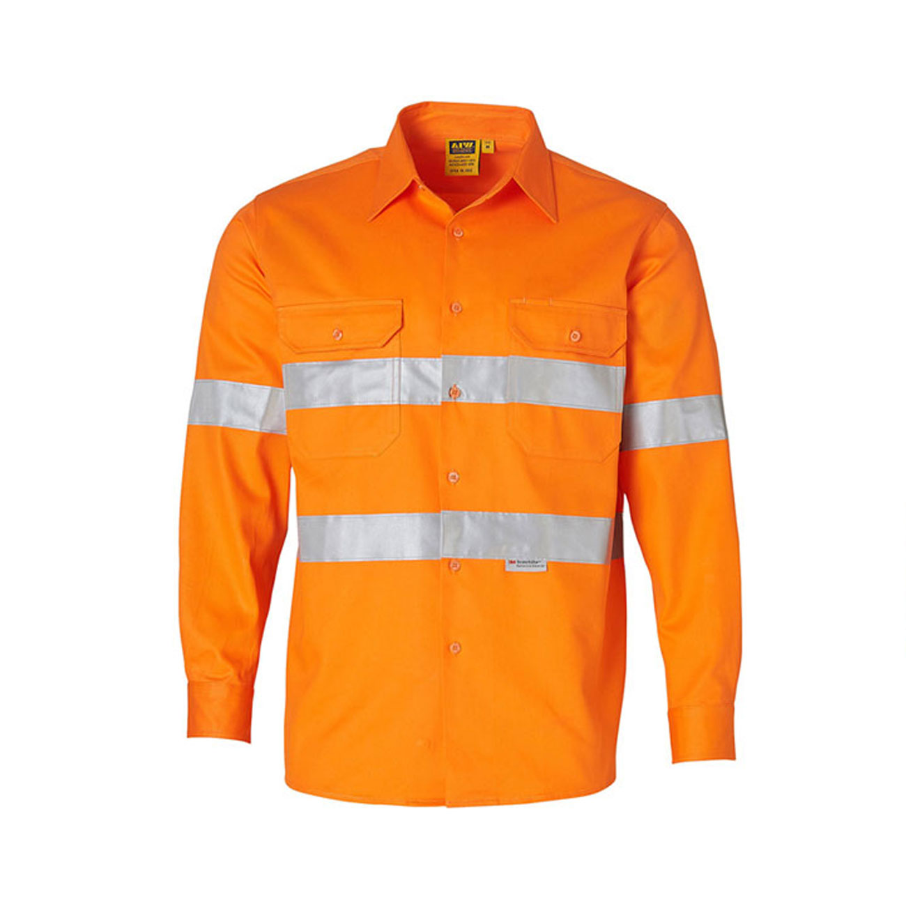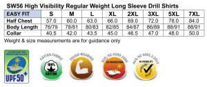 SW56 Unisex Hi-Vis Cotton Drill Long Sleeve Safety Shirt With 3M Scotchlitetm Reflective Tapes