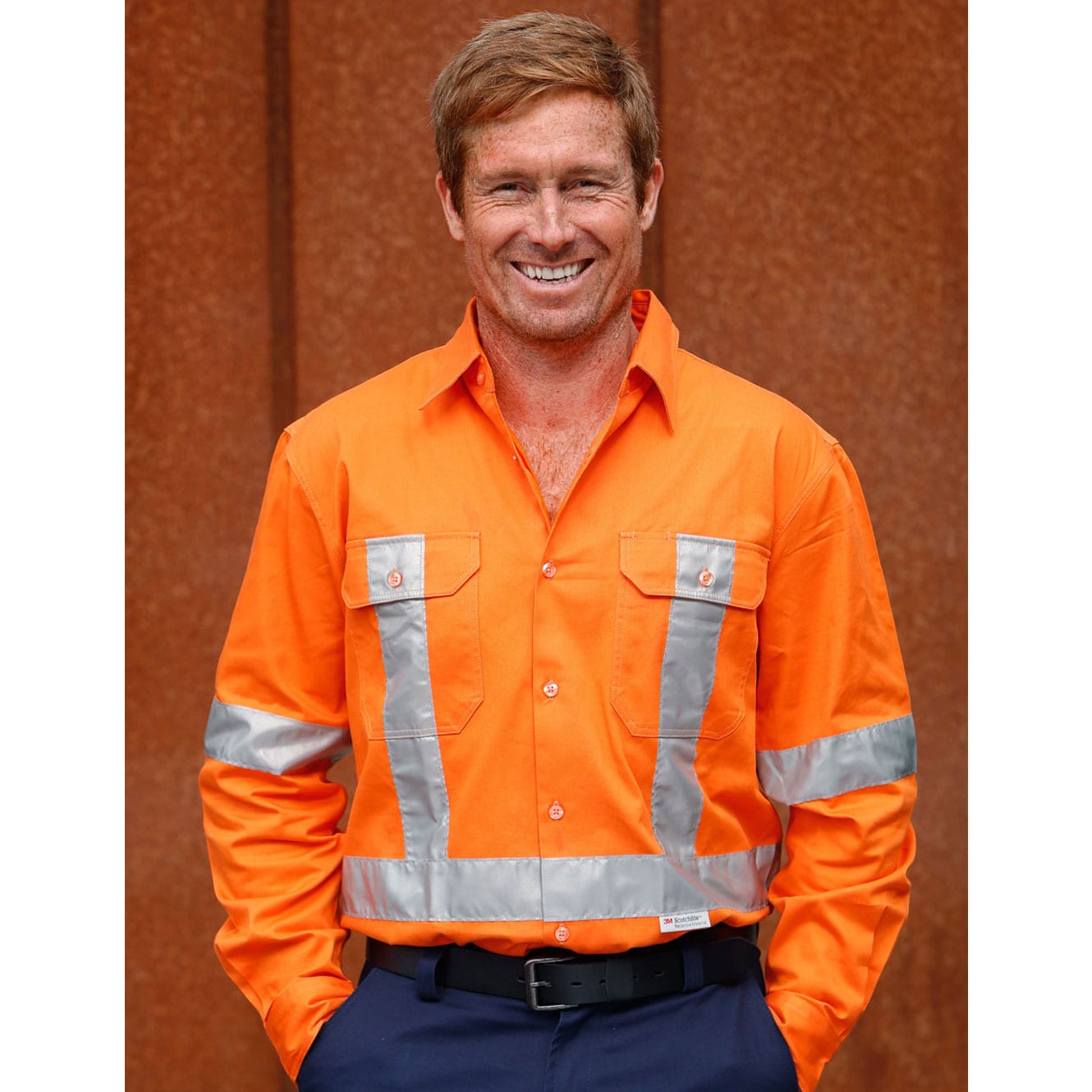 Unisex Hi-Vis Cotton Drill Long Sleeve Safety Shirt With 3M Scotchlitetm Reflective Tapes
