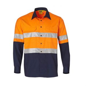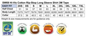 SW69 Unisex Hi-Vis Cotton Ripstop Long Sleeve Safety Shirt With 3M Scotchlitetm Perforated Reflective Tapes