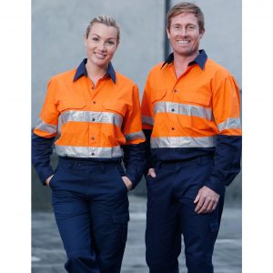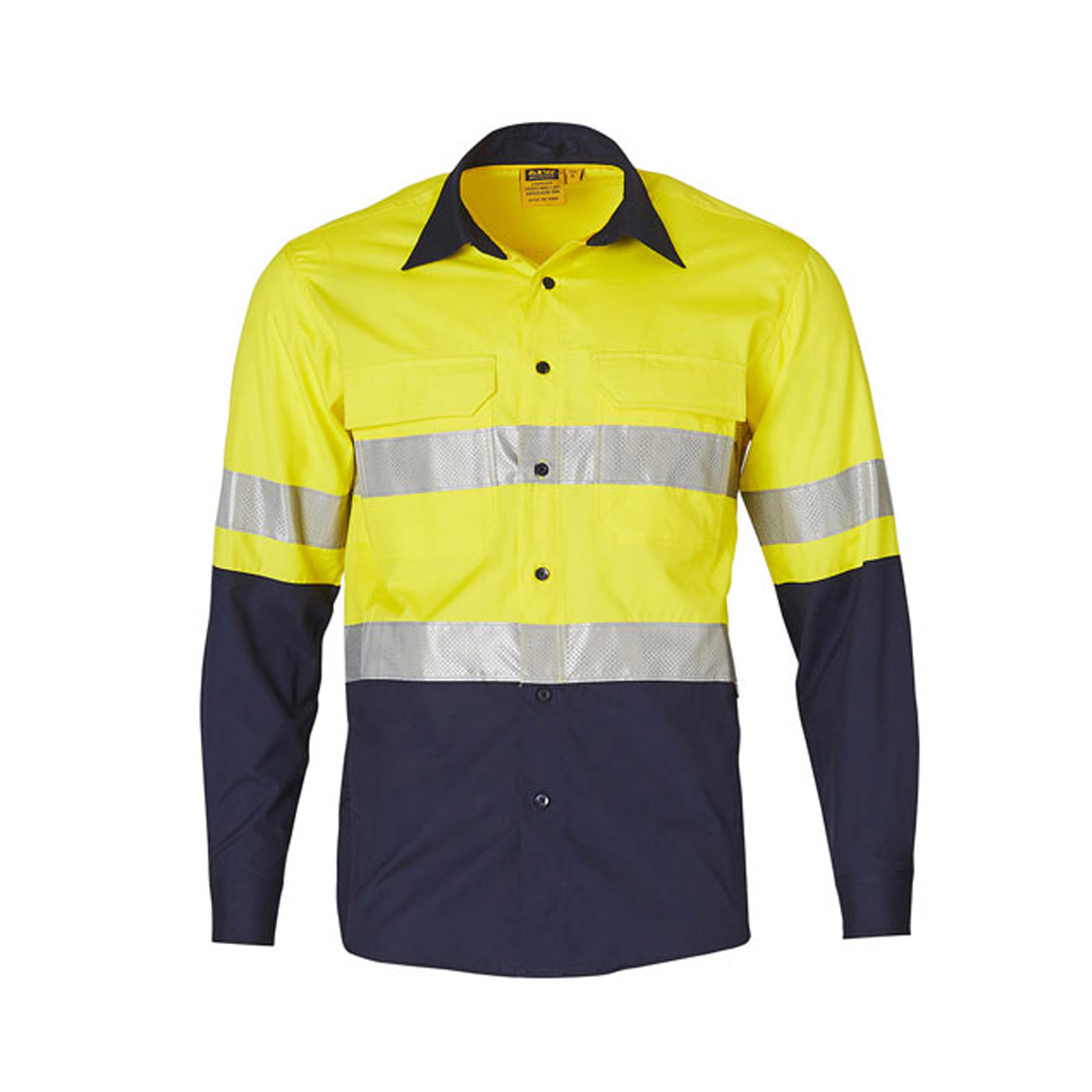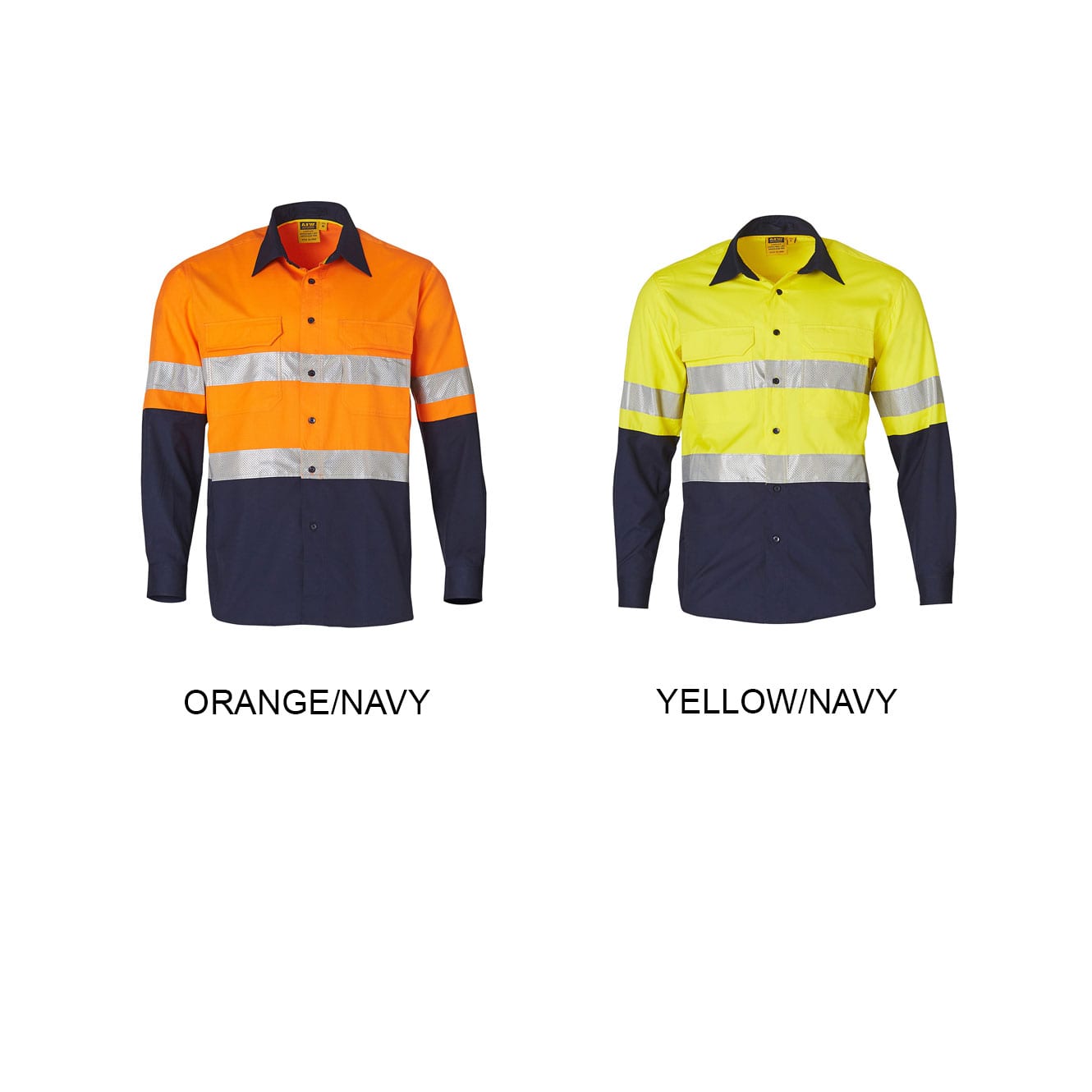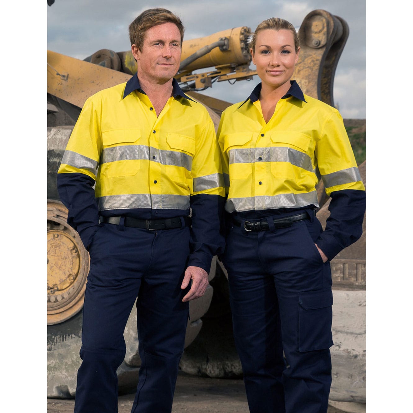 Unisex Hi-Vis Cotton Ripstop Long Sleeve Safety Shirt With 3M Scotchlitetm Perforated Reflective Tapes