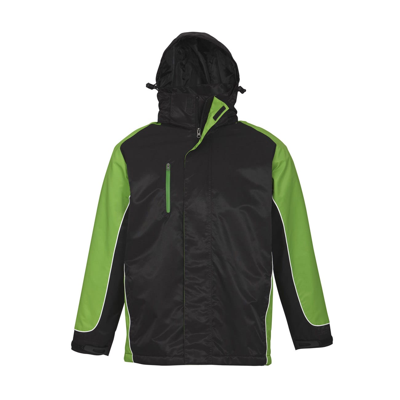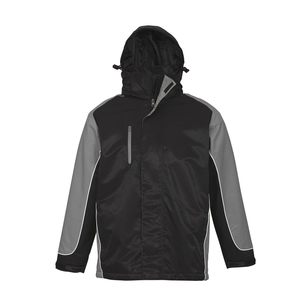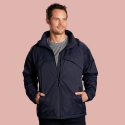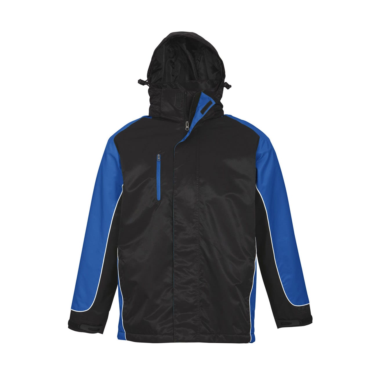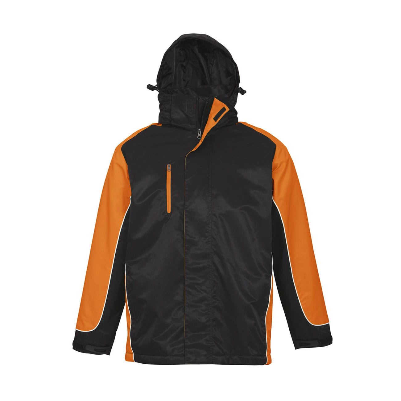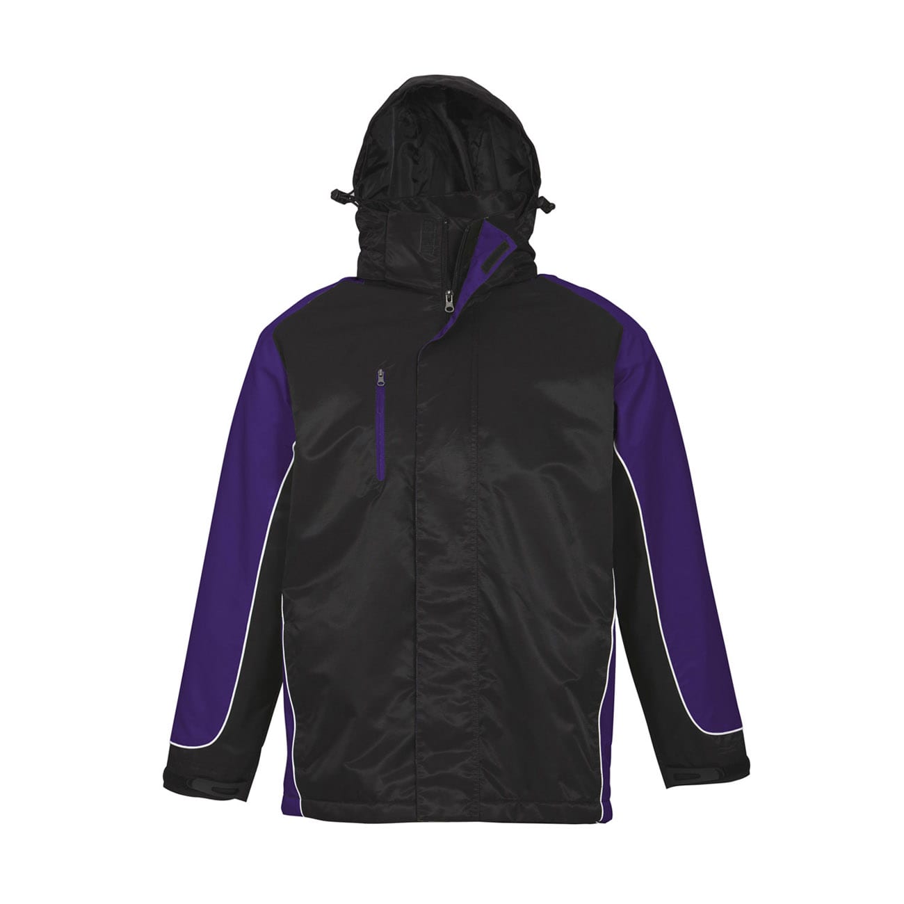 Concealed hood with 2 way full zip and storm flap