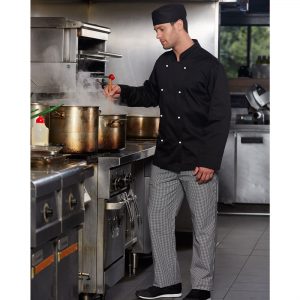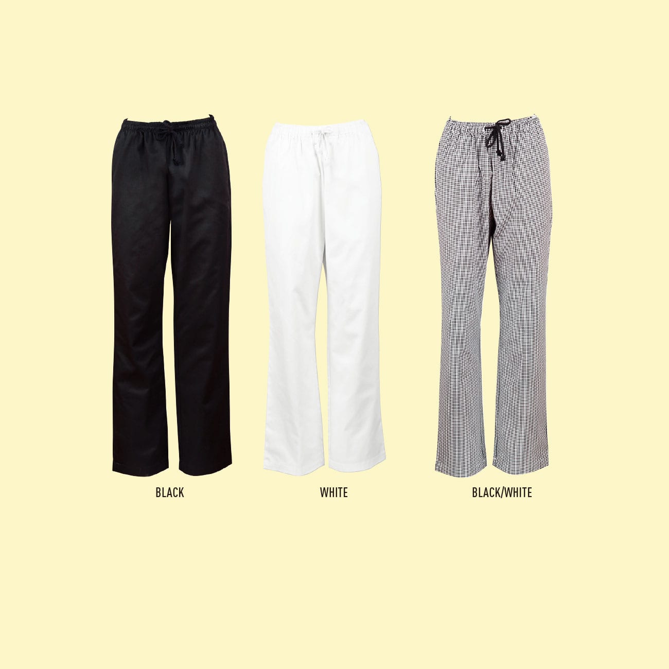 Elastic waist with draw cord. Two-side pockets. One back patch pocket.