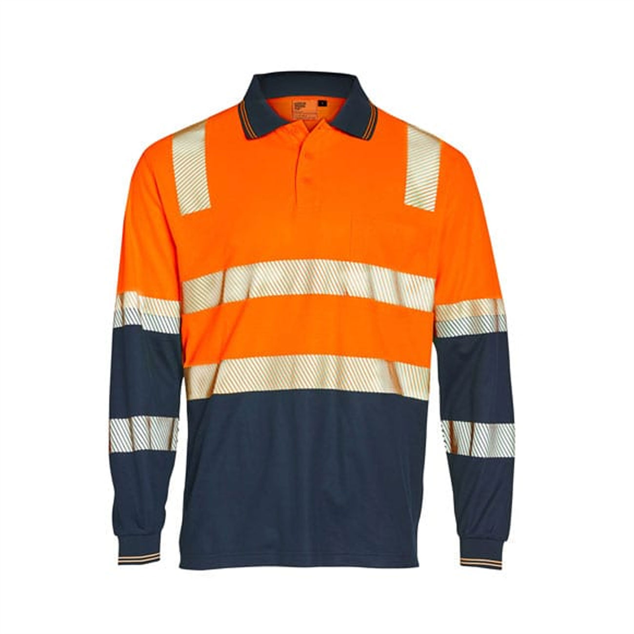 Segmented Reflective Tape. The polo is Unisex and is