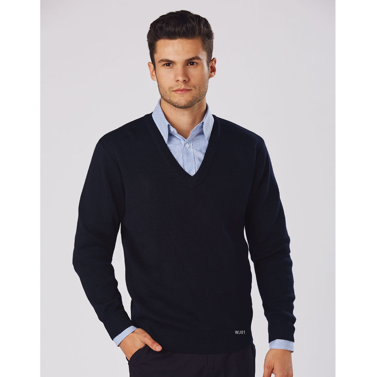 V-Neck, long sleeves jumper. Premium wool/acrylic blend.