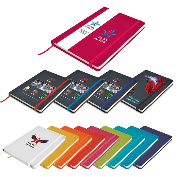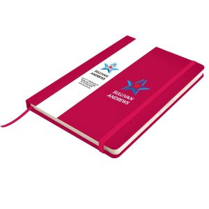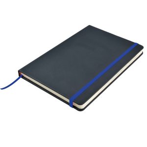 PU A5 Notebook with coloured elastic retaining closure and matching ribbon page maker.