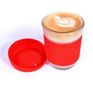 Glass Reusable Coffee Cup with silicone sleeve and silicone lid