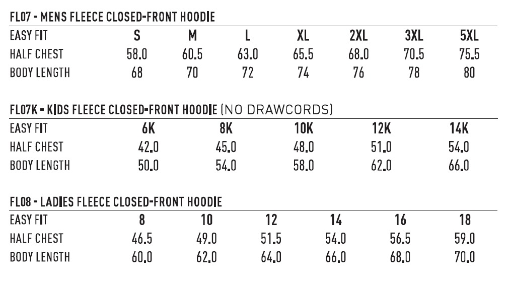 FL07 | FL07K | FL08 Warm Hug Fleece Closed-Front Hoodie