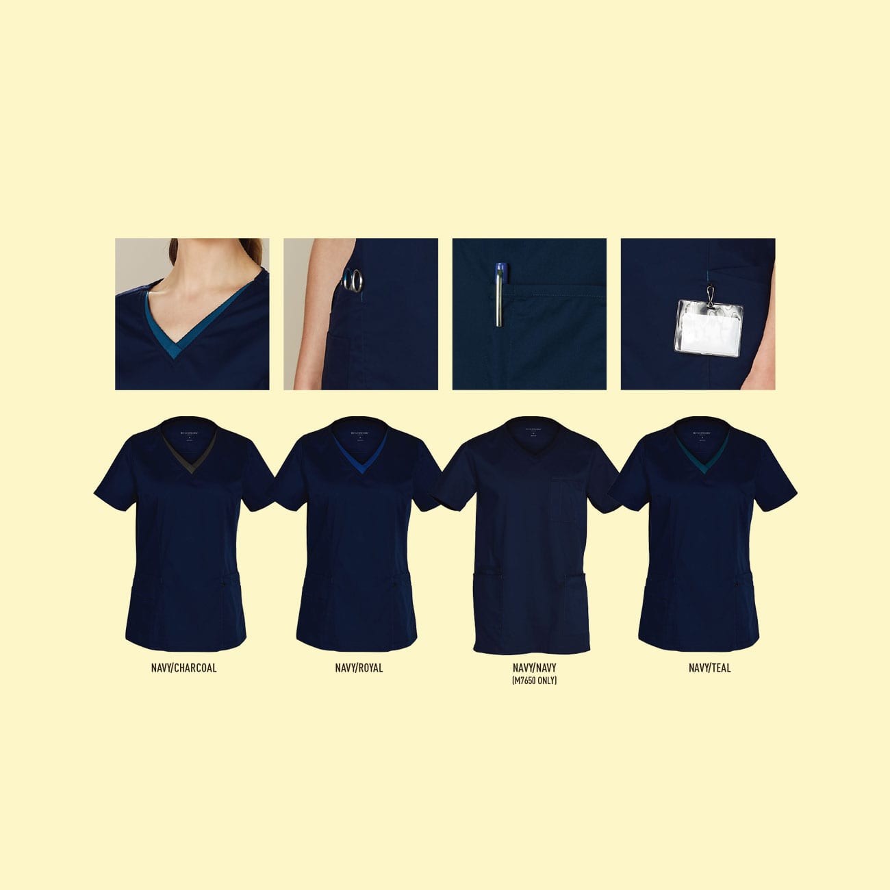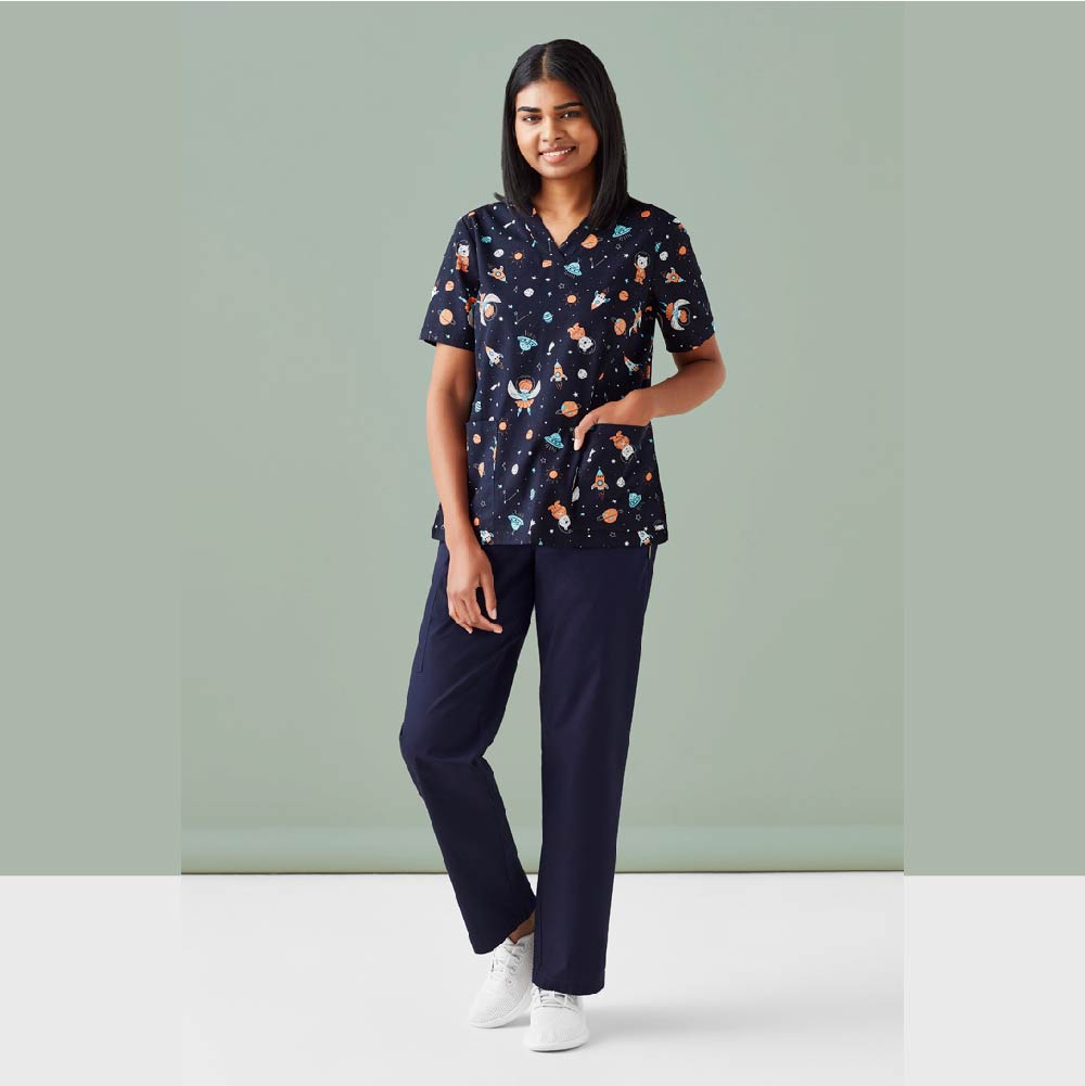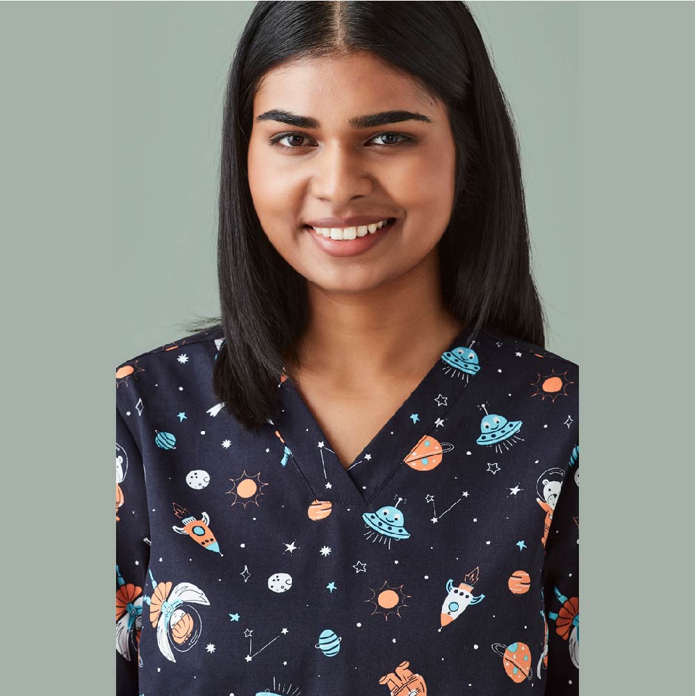A classic printed scrub top that can be paired back with any Biz Care lower
